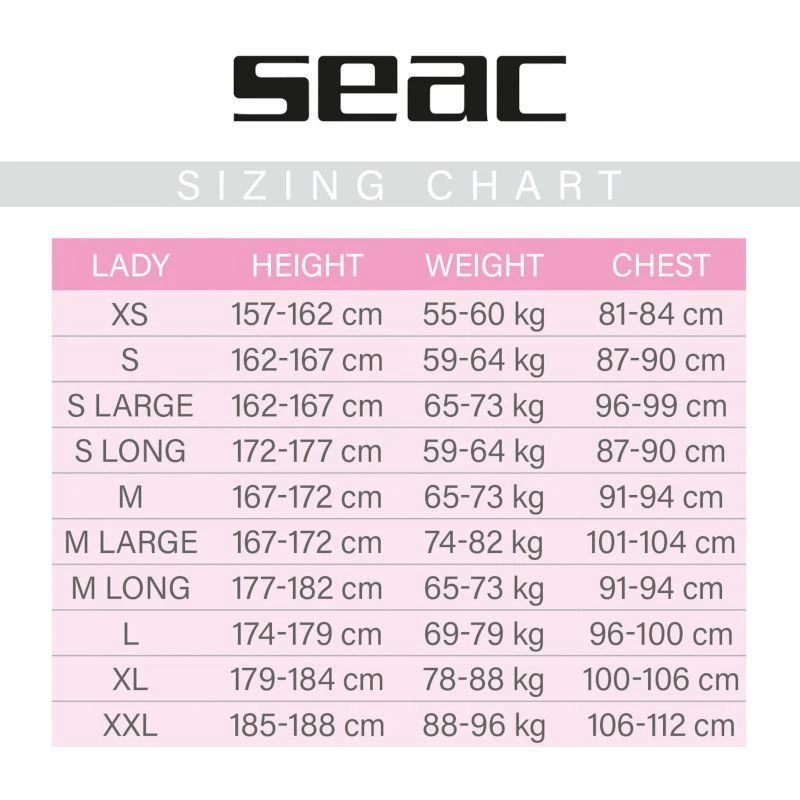 Seac Space est disponible en plusieurs tailles, également disponible avec des tailles intermédiaire pour les hommes et les femmes.