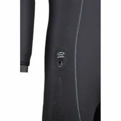 Manchon visage aminci (-2 mm) sur la monopièce col avec une zone autour du visage sans couture pour plus de confort, d’étanchéité et de durabilité. Col lisse intérieur pour plus d’étanchéité et fermeture finement ajustable grâce à un scratch élastique et un grip non agressif qui ne s’agrippe pas sur le jersey et les coutures. Double manchon poignet et cheville zippé avec manchon intérieur à retourner, en jersey intérieur et néoprène lisse extérieur. L’extrémité de la couture d’assemblage des manchons intérieurs est coupée à 45° pour plus d’élasticité et de solidité lors de l’habillage.