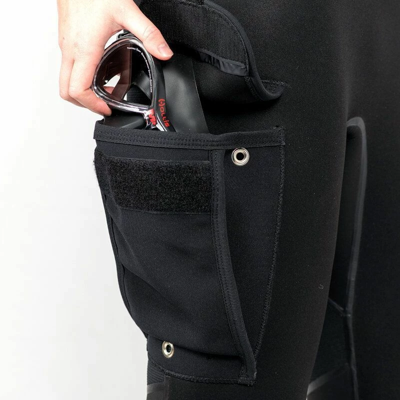 - Poches techniques sur les cuisses gauche et droite pour ranger les accessoires de plongée essentiels.