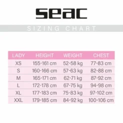 - 6 TAILLES – Seac Feel est disponible en 6 tailles pour hommes et 6 tailles pour femmes. L’extrĂŞme Ă©lasticitĂ© de la combinaison offre un ajustement et un confort parfaits pour tout le monde.