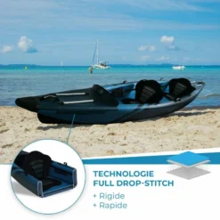 Le Kayak est conçu pour transporter deux personnes, avec une charge maximale de 220 KG. Les deux sièges fournis sont confortables et ergonomiques, notamment grâce à leurs dossiers hauts, permettant aux usagers de pagayer en toute tranquillité en lac ou en mer.