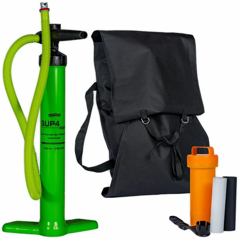 Vendu en Pack Avec le gouvernail , 2 sièges Tahe BackRest, 1 sac de transport, cales pieds, le gonfleur haute pression double action avec manomètre,le kit de réparation.