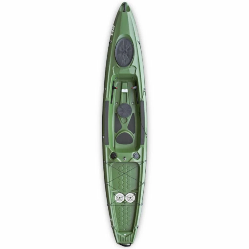 Le Java Fishing est avant tout un excellent compromis glisse/stabilité. Sa longueur de plus de 4 mètres permet des parties de pêche plus ambitieuses que sur nos autres kayaks. Sa large plateforme arrière et son système de roulage intégré sont d’autres avantages décisifs pour la pêche.