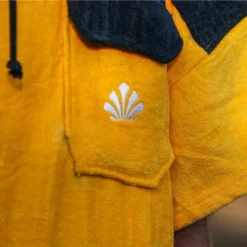 Un large poncho à capuche en éponge qui s’enfile comme un pull et sous lequel vous pourrez vous changer ou rester à déambuler sur le spot.